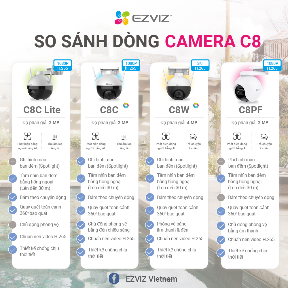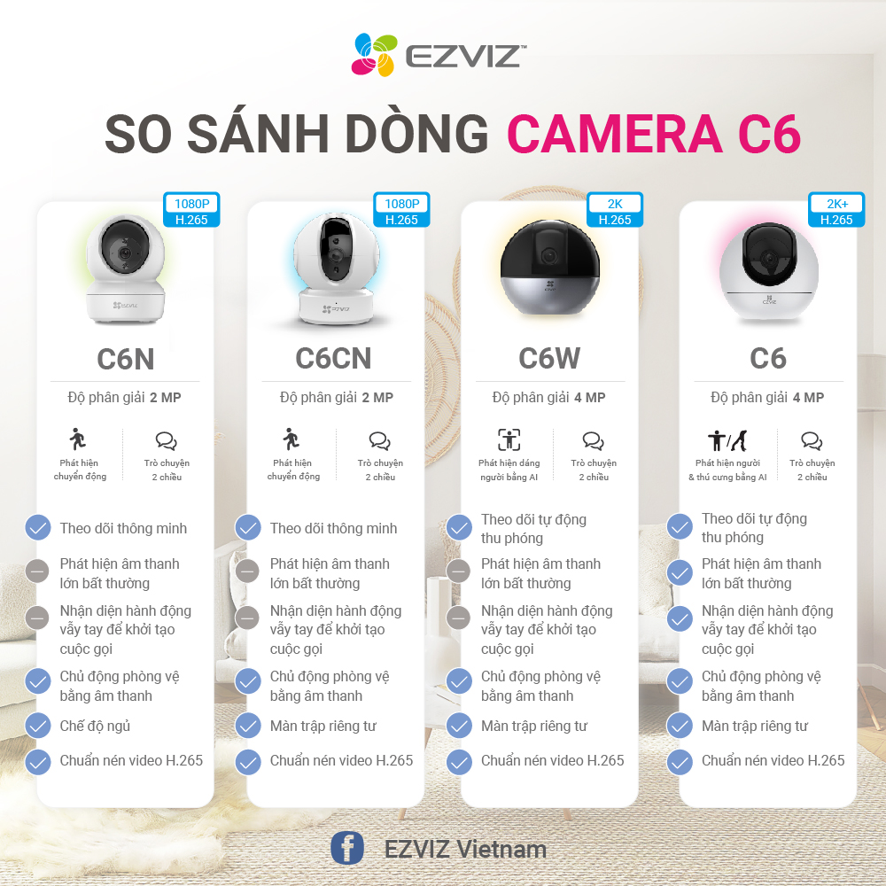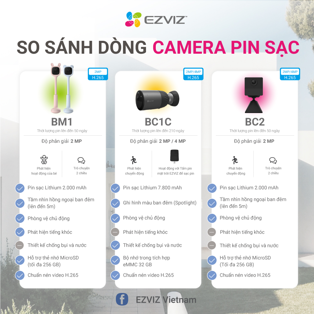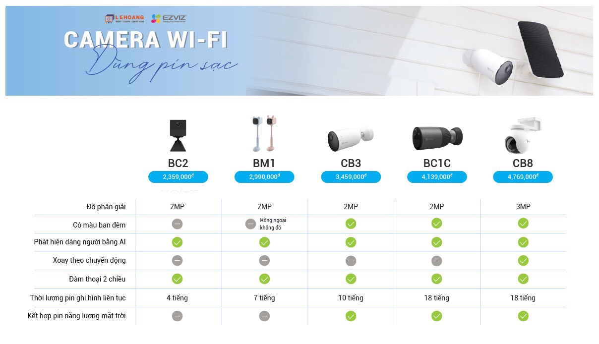 BẢNG SO SÁNH TÍNH NĂNG CÁC DÒNG CAMERA EZVIZ