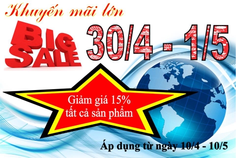 Hưởng ứng tinh thần chiến thắng 30/4 lịch sử. Gia Nguyễn khuyến mãi lớn dành cho khách hàng . Áp dụng từ 10/4 đến 10/5