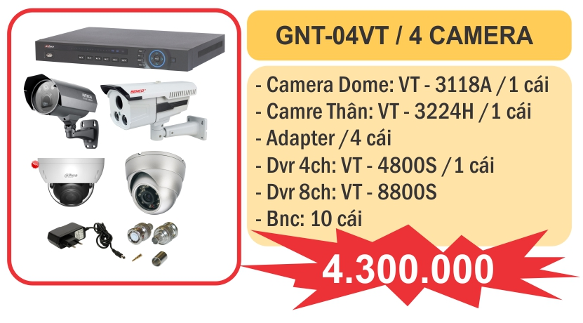 Bộ kit camera Vantech đóng gói sẵn tiện lợi, hình ảnh siêu nét phù hợp với cửa hàng, cơ quan, nhà riêng, cơ sở kinh doanh. Gia Nguyễn Technology cam kết chất lượng, uy tín, bảo hành chính hãng.