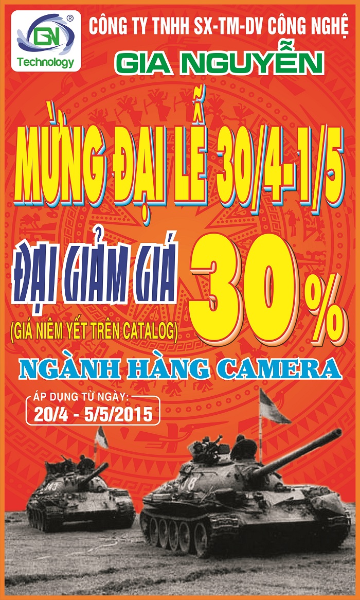 Giảm ngay 30% giá niêm yết của hãng cho tất cả sản phẩm CAMERA cung cấp bởi Gia Nguyễn trong suốt thời gian diễn ra chương trình.