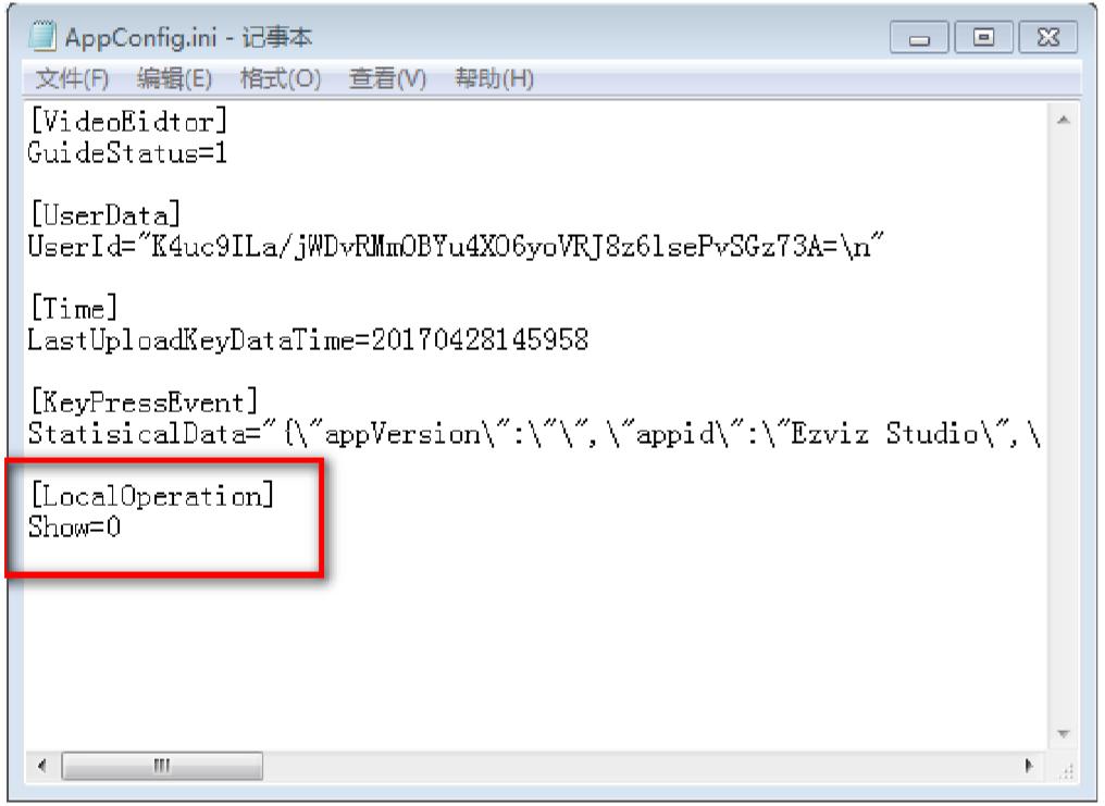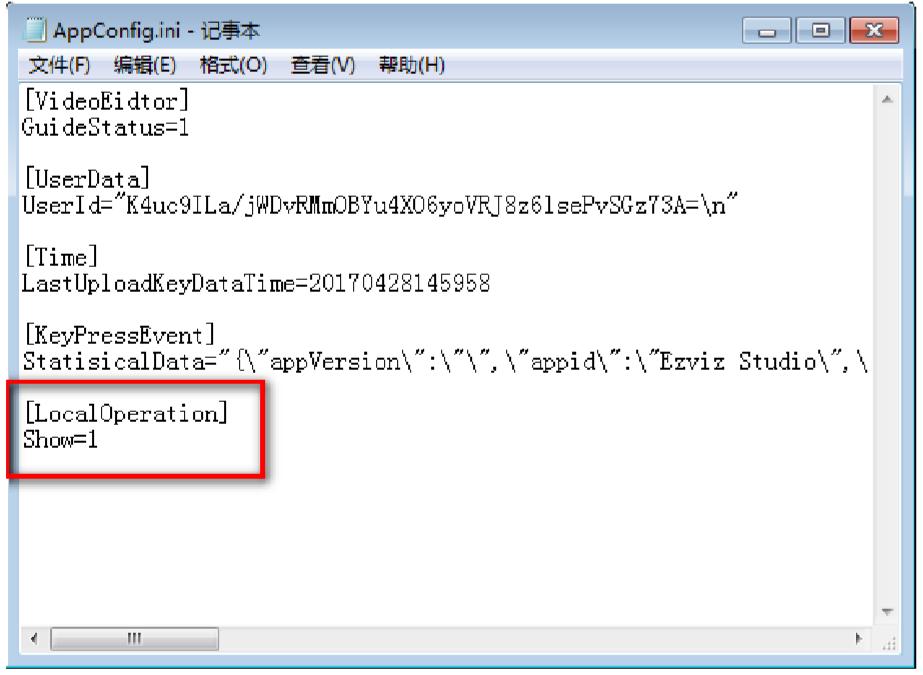 3. Thêm nội dung phần bôi vàng vào thư mục “AppConfig.ini” và lưu lại. [LocalOperation] Show=1