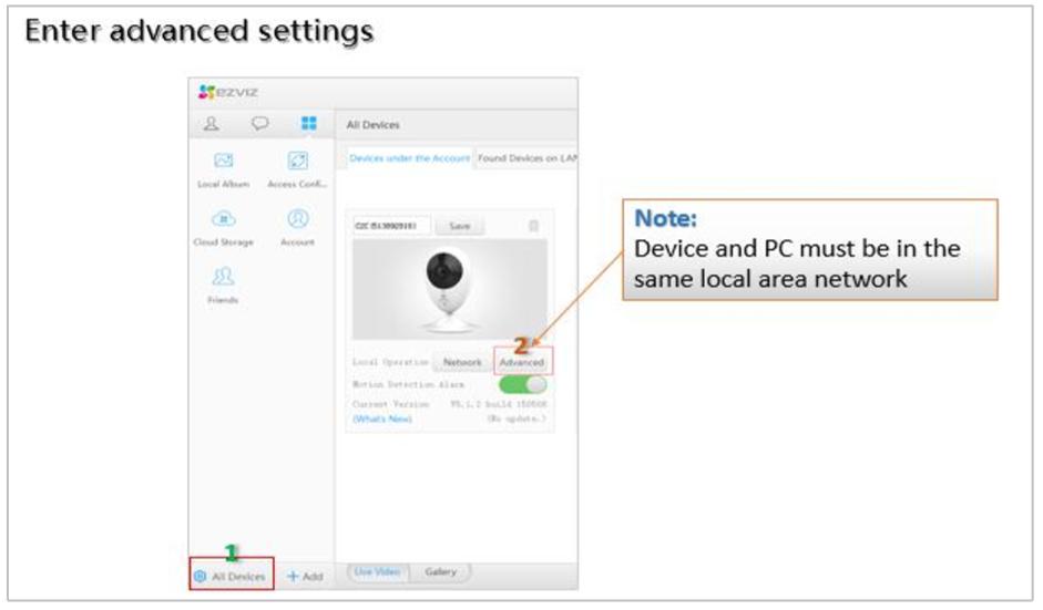 Hướng dẫn cách truy cập vào “Advanced Setting” trên Ezviz Studio