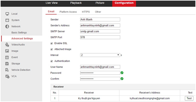 Hướng dẫn cấu hình gởi email trên DVR Hikvision