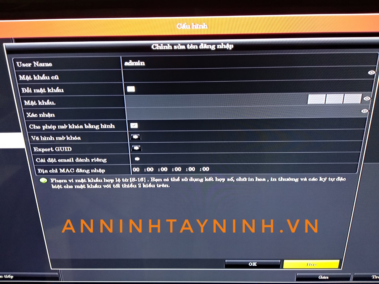 Khi cài đặt đầu ghi chúng ta nên điền thông tin email cá nhân ( ưu tiên Gmail ) vào phần quản lý tài khoản trên đầu ghi, dùng để nhận mã kích hoạt reset pass đầu ghi sau này.