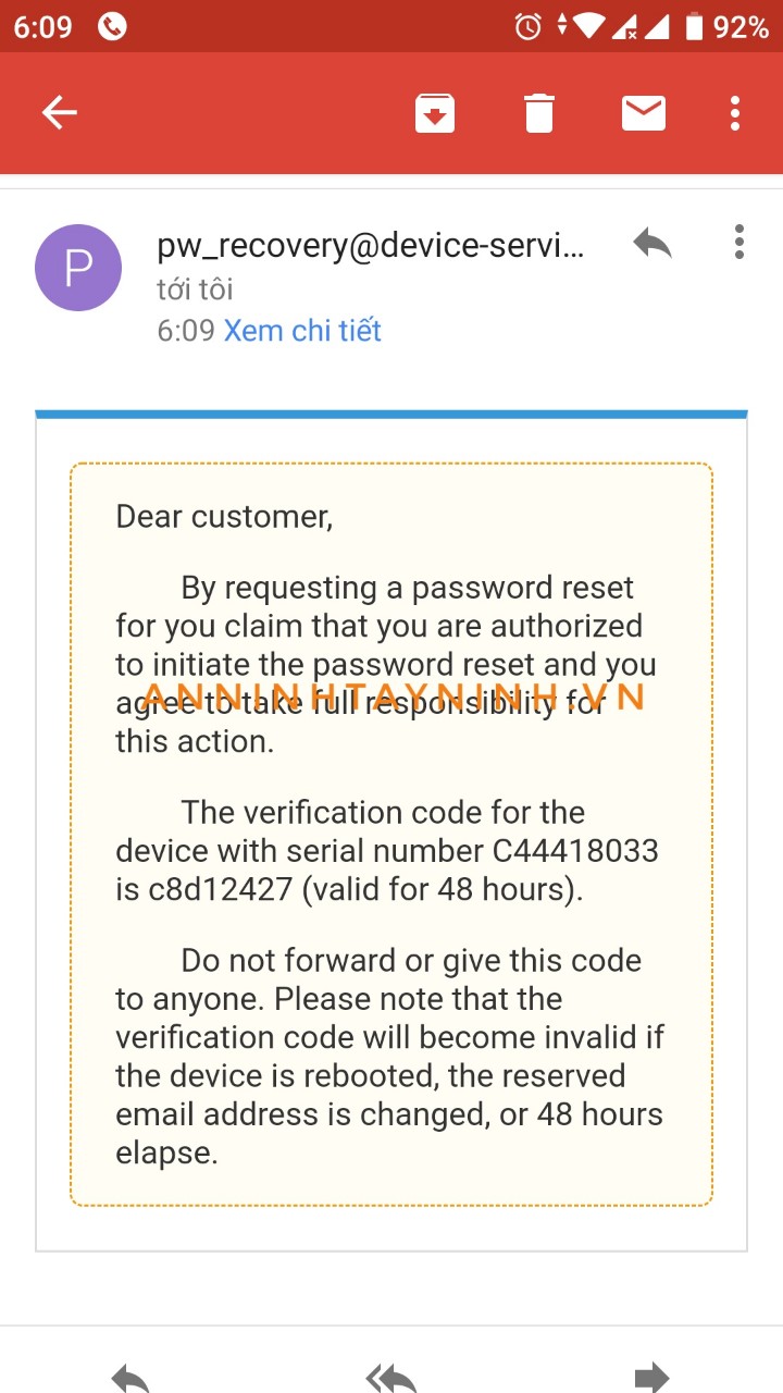 Bước 4: Nhận mã kích hoạt đặt lại pass đầu ghi qua email