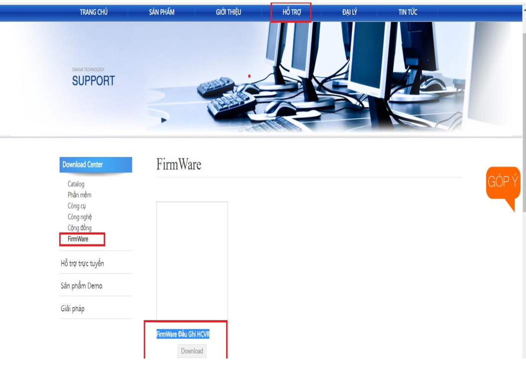Vào Mục “Hỗ Trợ” -> Firmware -> Fimware Đầu Ghi