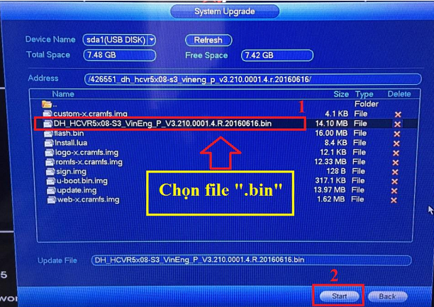 - Bước 5 : Update phần mềm mới cho đầu ghi thông qua USB :