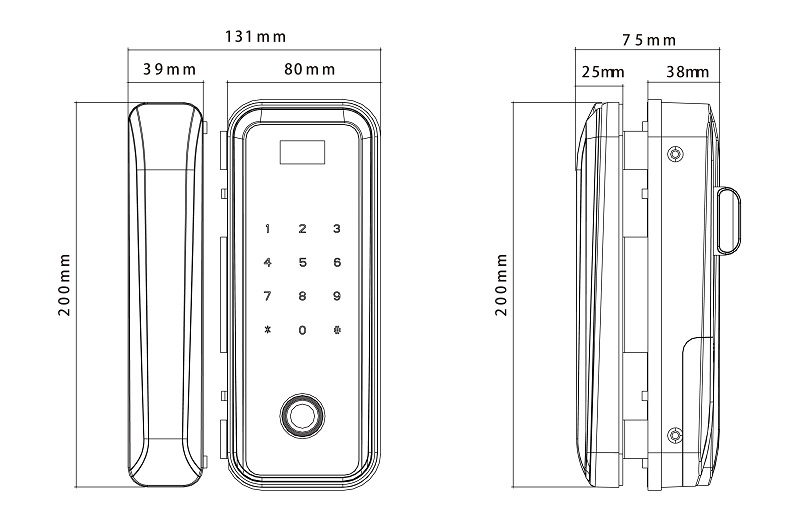KHÓA CỬA KÍNH VÂN TAY-ĐIỀU KHIỂN ZKTECO GL300 1. Thiết kế kiểu dáng Hàn Quốc hiện đại . 2. Phương thức mở khóa: Bằng vân tay, thẻ, mật mã và điều khiển từ xa 3. Dung lượng: 300 vân tay, 300 thẻ và 300 mật mã. 4. Bàn phím cảm ứng với chế độ mật mã ảo chống dò mật mã 5. Xem và lưu trữ thời gian mở cửa trực tiếp trên khóa. Dung lượng bộ nhớ 10.000 lần mở cửa 6. Sử dụng 4 viên pin AA 1.5V, nguồn dự phòng cổng sạc bên...
