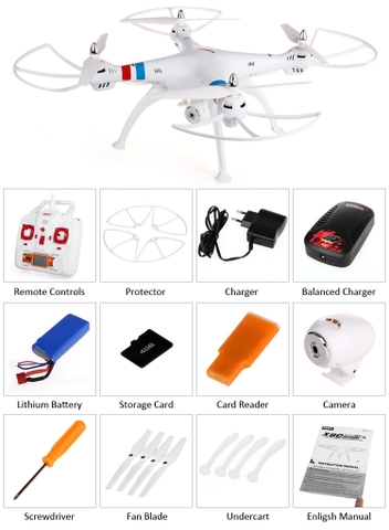 Máy bay điều khiển từ xa Syma X8C Hãng sản xuất: Syma Chất liệu: Nhựa ABS Màu: Trắng Động cơ: Chổi than Camera: 2 Mpx Đèn LED: Có Tính năng: Quay phim + Chụp Ảnh Headless Mode: Nhào lộn 3D; bay lên, xuống, trái, phải Tần số điều khiển: 2,4 Ghz Phạm vi điều khiển: 100 m Dung lượng pin: 2000 mAh – 7.4v Loại pin: Li-on Thời gian sạc: 60 phút Thời gian bay: 10 – 15 phút Pin điều khiển từ xa: 4 x AA Kích thước sản phẩm (D x R x C cm): 48.5 x 48.5 x 19 Trọng lượng (KG): 1.5 Sản xuất tại: Trung Quốc