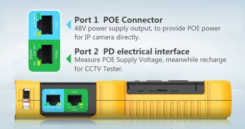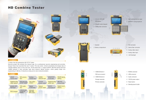 Máy kiểm tra camera CVI Model HE-CVIT1 Physical Port Network Port 2*10/100/1000M RJ45 port, support switch mode Function Port 2*BNC port (Video IN and Video OUT), 1*RS485, 1*Audio In, 1*USB, 1*Reset IPC Test Protocol ONVIF 2.4.1, RTSP, RTP Ethernet Test 10/100/1000M Ethernet link test, loop detect, Ethernet traffic flow monitor, link quality test IP Configuration static IP/ DHCP client/ DHCP server IPC Test Discover camera, real time video, camera configuration, PTZ control, audio test, full screen preview and 8x digital zoom, snapshot, record video(recording original data stream) HDCVI & Analog Test SD signal Format NTSC, PAL HD video signal HDCVI Resolution D1, 720P, 1080P Signal Level 1Vpp Camera Test Real time video, PTZ control, audio test,...