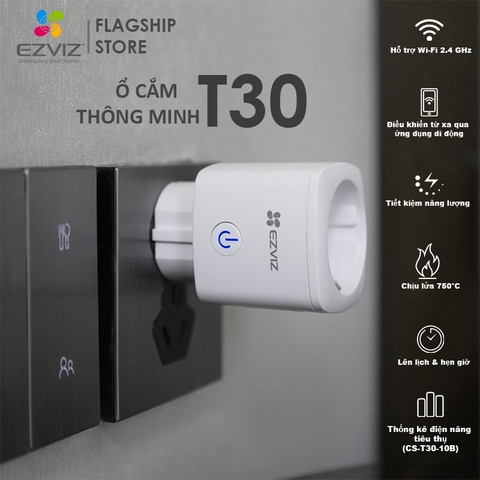 Ổ cắm thông minh EZVIZ CS-T30-10B-EU hỗ trợ thống kê công suất điện tiêu thụ – Ổ cắm Wifi thông minh thiết kế nhỏ gọn. – 10A, công suất 2300W – WiFi 2.4 GHz – Điều khiển từ xa bằng app EZVIZ , bật, tắt , hẹn giờ … – Điều khiển bật tắt bằng giọng nói với trợ lý ảo Amazon Alexa và Google Assitant – Hỗ trợ thông kê công suất điện tiêu thụ. – Nguồn cấp: AC 220V – 240V