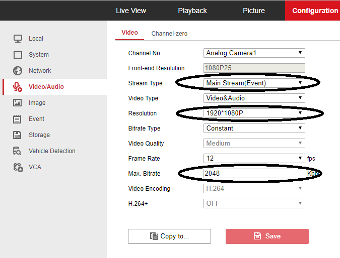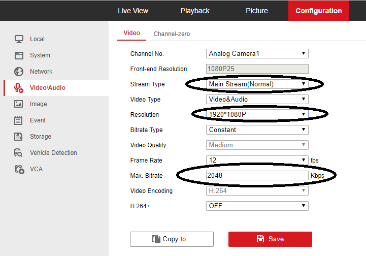 *** Một chú ý nhỏ cho các anh em kỹ thuật khi cấu hình đầu ghi Hikvision sử dụng Hik-connect load nhanh hơn, anh em nên điều chỉnh thông số camera trên đầu ghi tại các điểm đánh dấu trên hình theo các thông số sau: