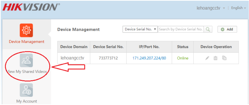 Bước 1: Đăng nhập tài khoản Hik-Connect, chọn “View My Shared Videos”