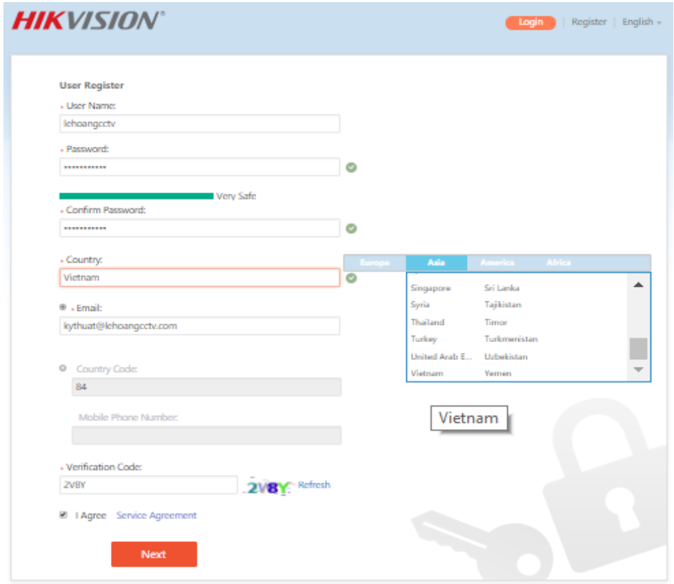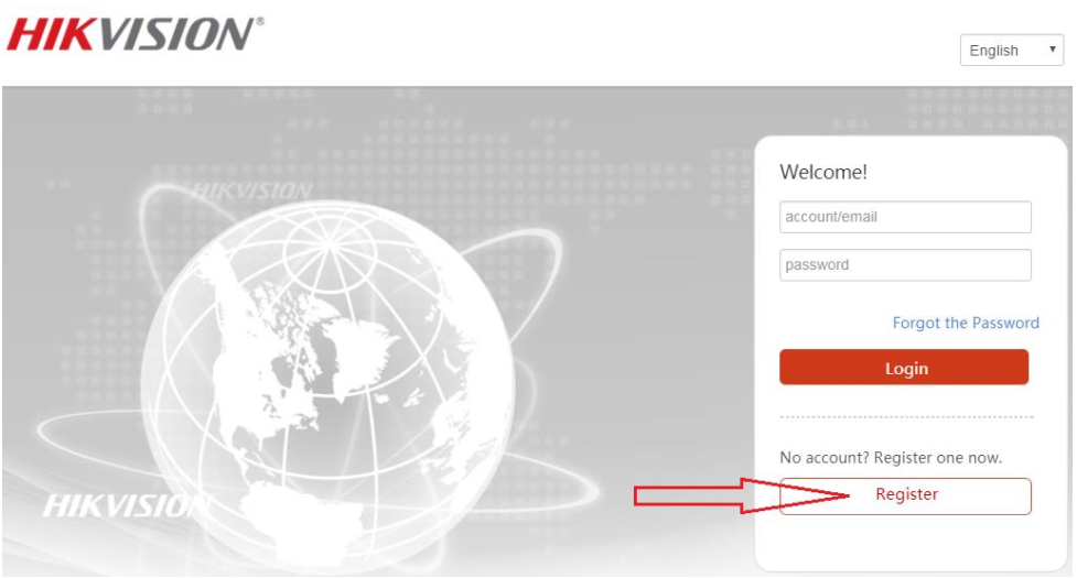 Bước 1: Truy cập www.hik-connect.com, chọn Register để đăng ký tài khoản mới