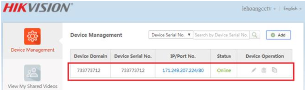 Bước 3: Thiết bị đã được thêm vào tài khoản hik-connect của bạn
