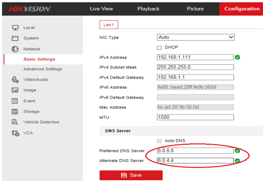 Hik-Conncet sử dụng địa chỉ DNS Server là của Google 8.8.8.8