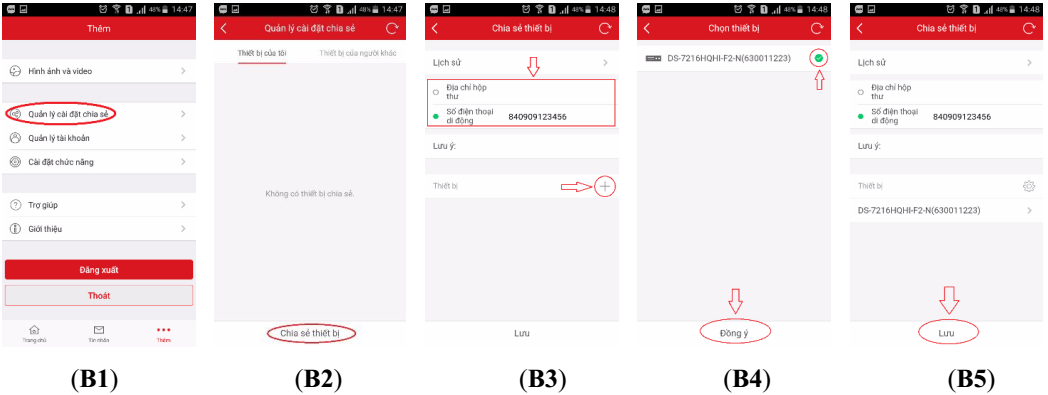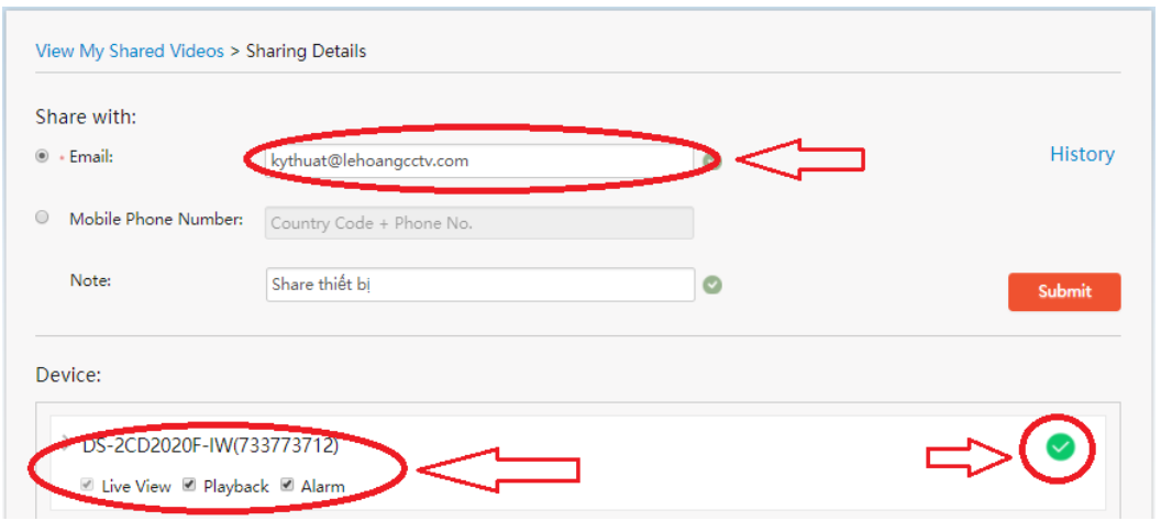 Bước 1: Share thiết bị cho tài khoản Hik-Connect khác