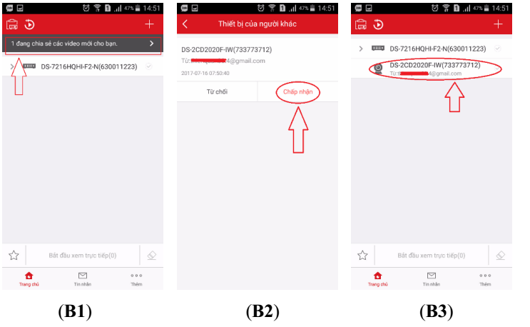 (B1): Đăng nhập tài khoản “Hik-Connect” được chia sẻ sẽ thấy thiết bị được chia sẻ