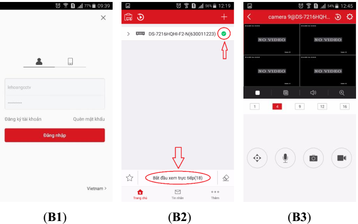 (B2): Chọn thiết bị “” và chọn “Bắt đầu xem trực tiếp (xx)”