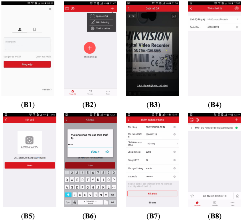 (B7): Nhập “Tên người dùng” và “Mật khẩu” của thiết bị