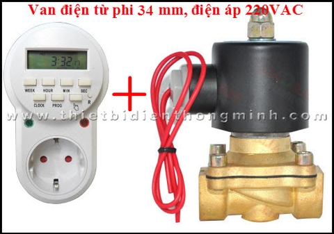 Hệ thống đơn giản gồm 1 van điện từ phi 34mm điện áp 220VAC và 1 timer kĩ thuật số để hẹn giờ tắt mở van điện từ.